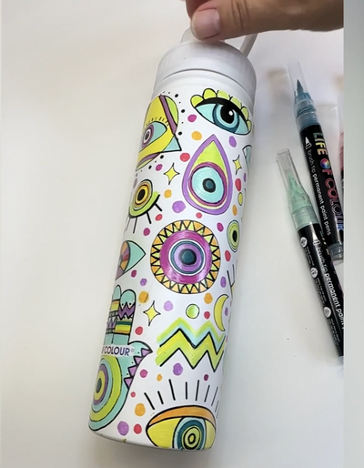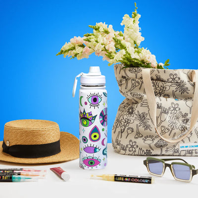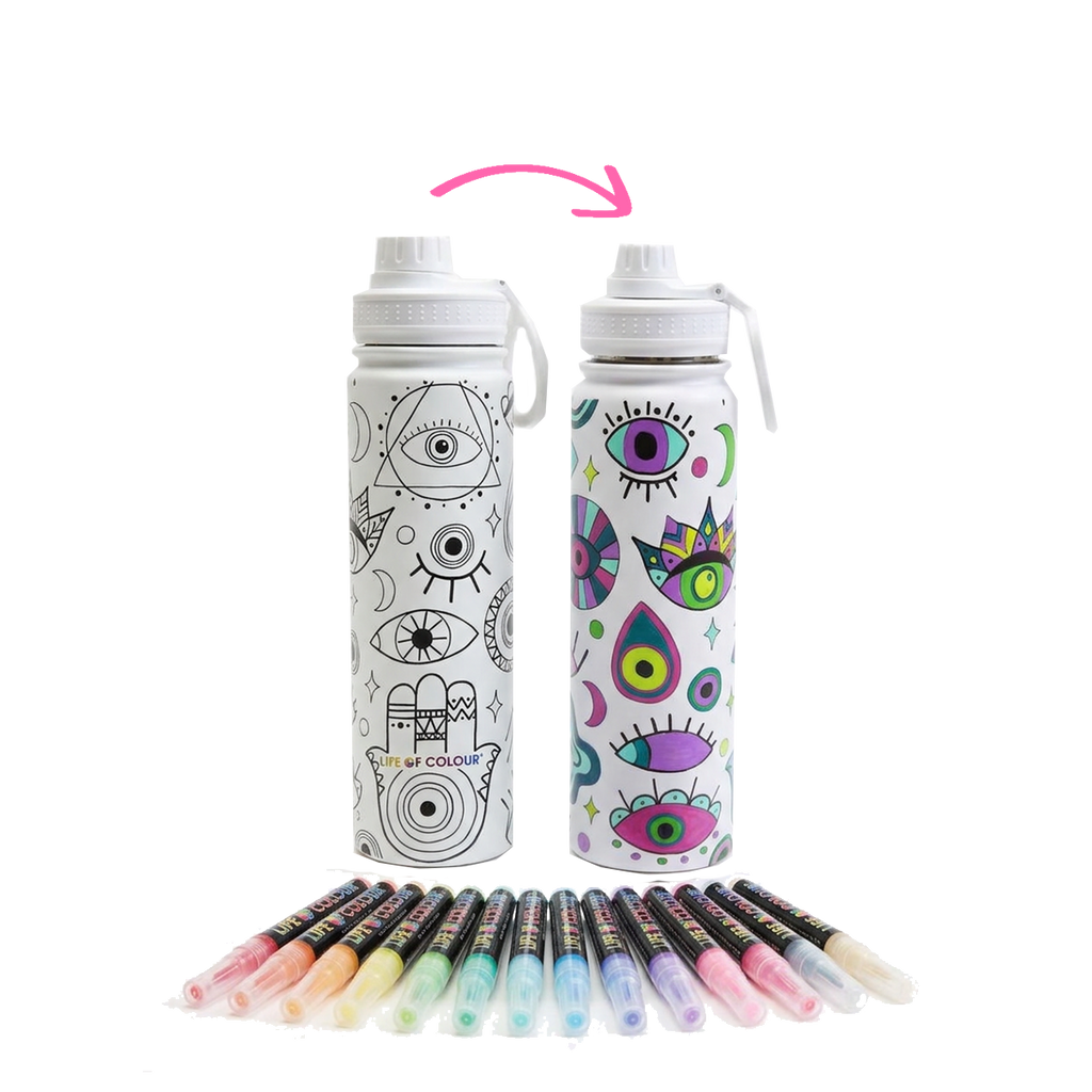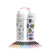 Laat je creativiteit én mindfulness stromen met de Doodle Drink Fles, een unieke 650 ml fles. Maak jouw eigen unieke creatie, en neem hem overal mee naar toe! De fles is voorzien van betoverende ilustraties die je zelf kunt inkleuren met de 12 meegeleverde Permanent Paint Pens.