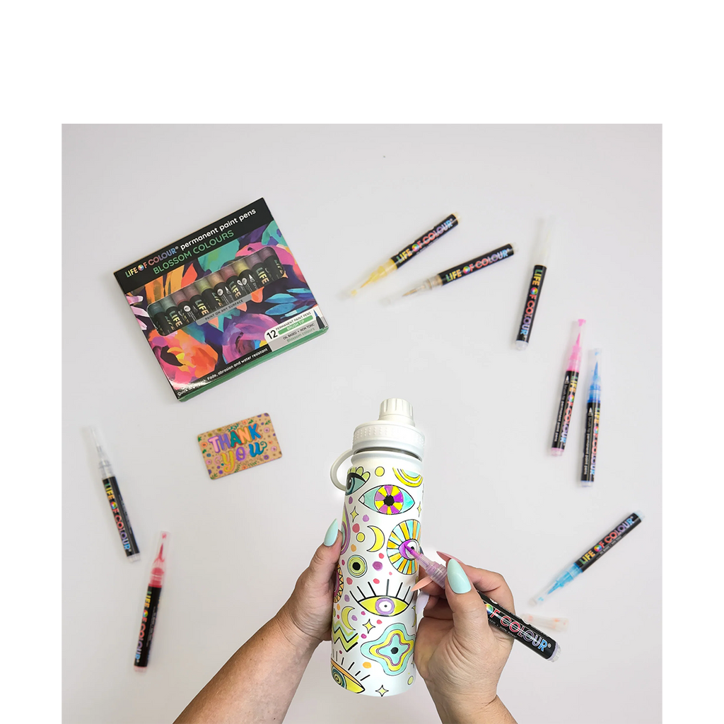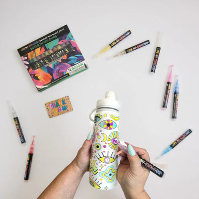 Breng je ideeën tot leven met deze veelzijdige stiften! De paint pens werken op vrijwel elk oppervlak: roestvrij staal, textiel, hout, keramiek, glas en meer. Ideaal voor al je creatieve projecten! Met 12 levendige kleuren kun je eindeloos combineren, details toevoegen en jouw fles een unieke look geven.