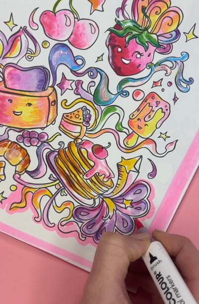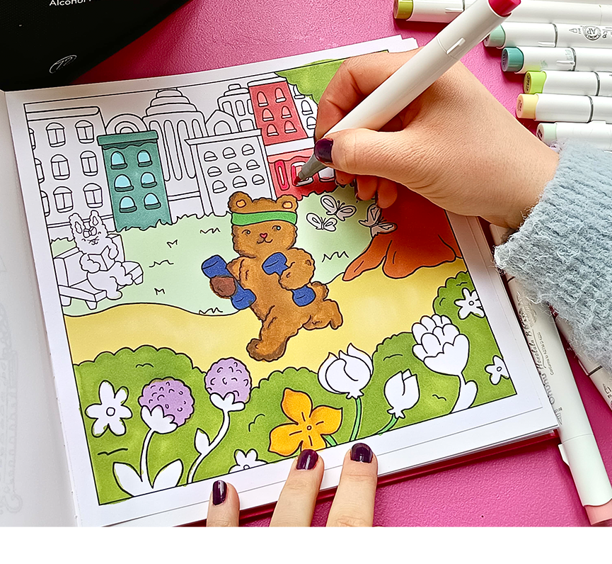 Maak je illustraties extra levendig met Jill's eigen set van 24 alcoholmarkers. De inkt vloeit soepel, laat kleuren mooi in elkaar overlopen en zorgt voor een bijna streeploze dekking. Perfect voor schaduwen, zachte overgangen en heldere kleurvlakken. De markers zijn ideaal voor zowel beginners als gevorderde tekenaars en passen perfect bij de papierkwaliteit van je kleur- en doodleboeken, deze drukken namelijk niet door!