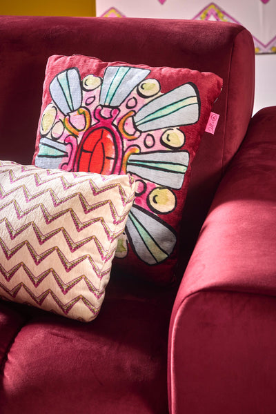 De collectie is warm, kleurrijk en lekker funky – just how I like it.. 😉. Denk aan lampen en banken met mijn patroon, kussens met mijn illustraties, art prints voor aan de muur en nog veel meer.