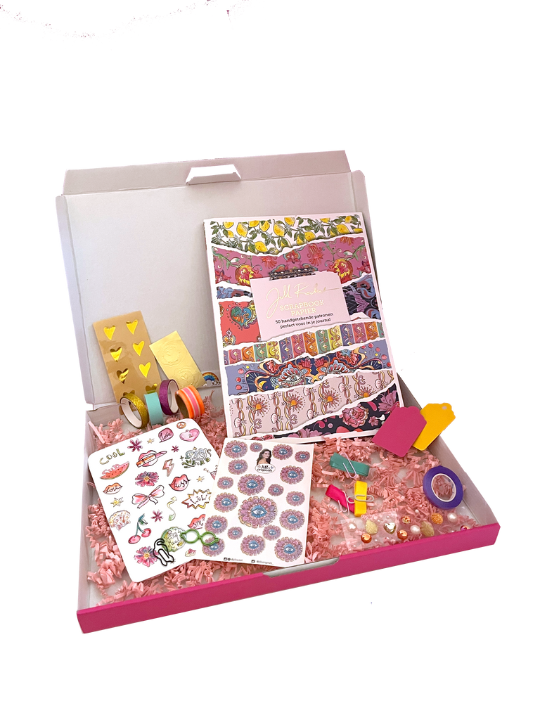 Zeker! Deze box bevat alle essentials om een journal vol prachtige, kleurrijke, FUN pagina's te maken. Het enige wat je nog nodig hebt is je eigen journal, of ga voor Jill's Tekenjournal (te vinden in onze shop, én met een leuke feestkorting!). Have fun!